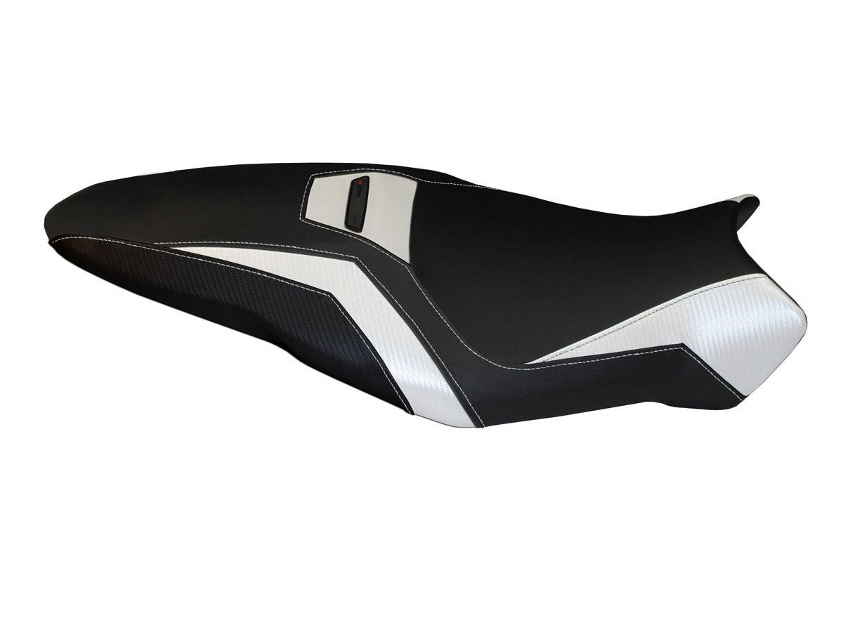 Exclusive seat cover made of black non-slip material. Laterals in black carbon look and inserts.
