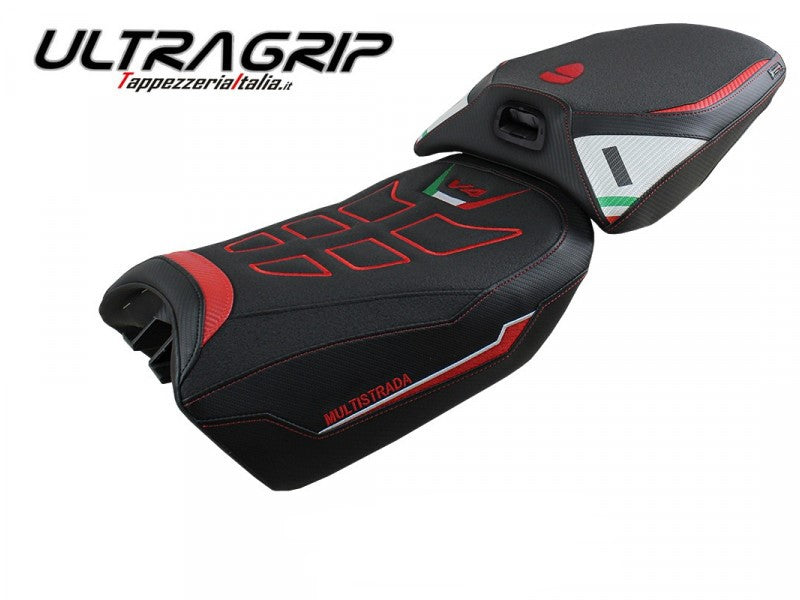 Ultragrip seat cover for Ducati Multistrada V4 Pikes Peak by Tappezzeria Italia.