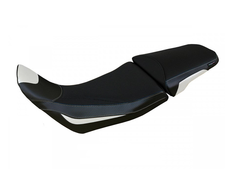 Exclusive seat cover made of black non-slip material. Laterals in black carbon look and inserts.