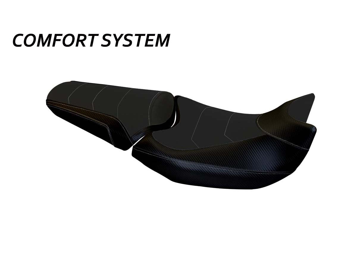 Exclusive seat cover made in black non-slip material. Laterals in black carbon look and seams.