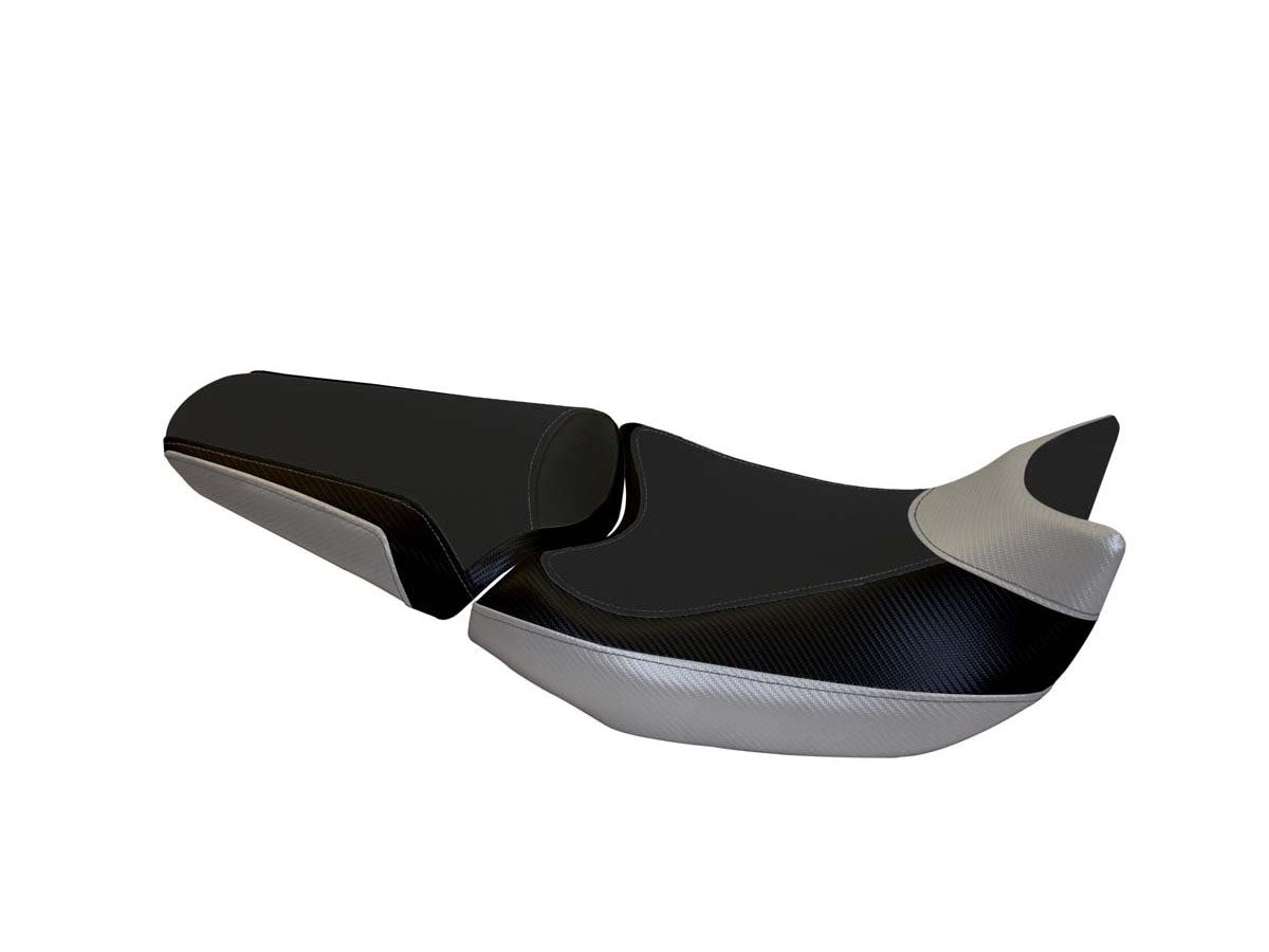 Exclusive seat cover made in black non-slip material. Laterals in black carbon look and inserts.