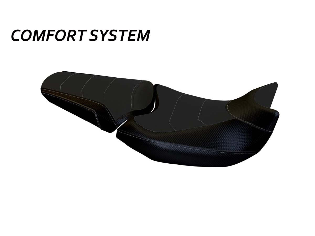 Exclusive seat cover made in black non-slip material. Laterals in black carbon look and seams.