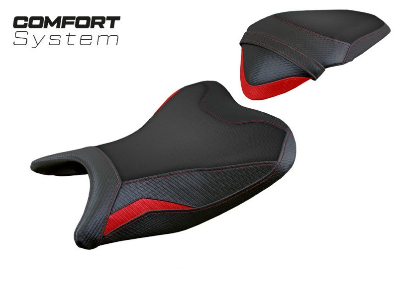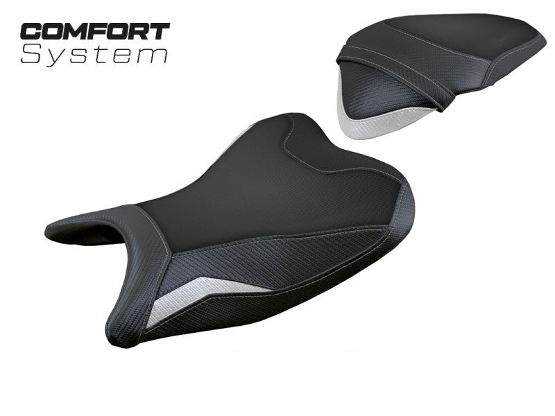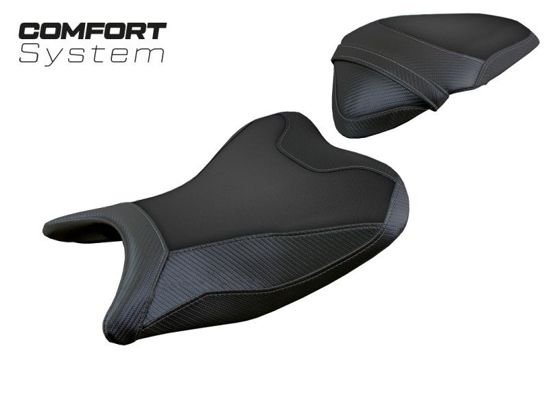 Exclusive seat cover made in black non-slip material, black carbon look and inserts.