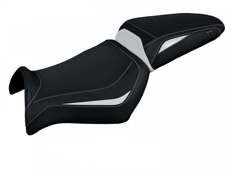 Exclusive seat cover made of black non-slip material. Laterals in black carbon look and inserts.