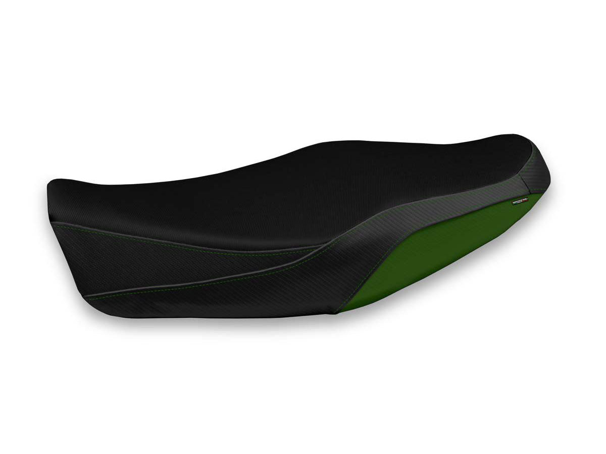 Exclusive seat cover made in black non-slip material, black carbon look and inserts.