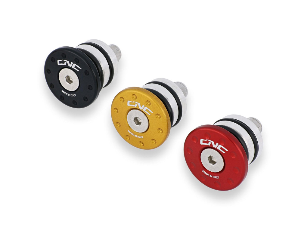 Front fork plugs (right side) by CNC Racing for Ducati frame crash protection sliders.