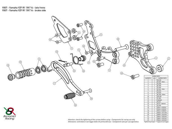 Y007 - BONAMICI RACING Yamaha YZF-R1 (09/14) Adjustable Rearset