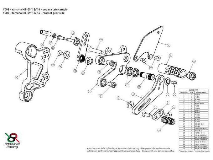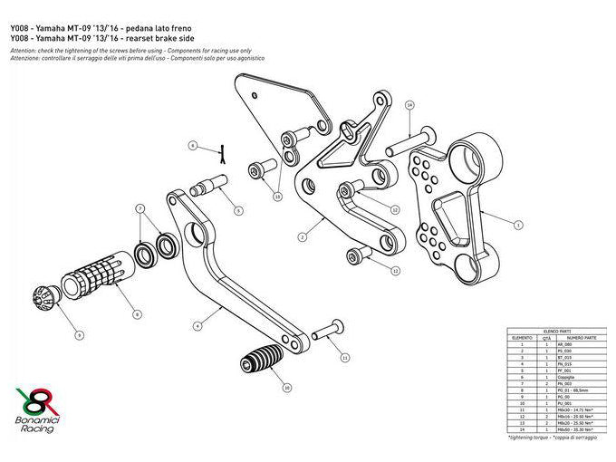 Y008 - BONAMICI RACING Yamaha MT-09 / Tracer 900 / XSR900 (14/20) Adjustable Rearset