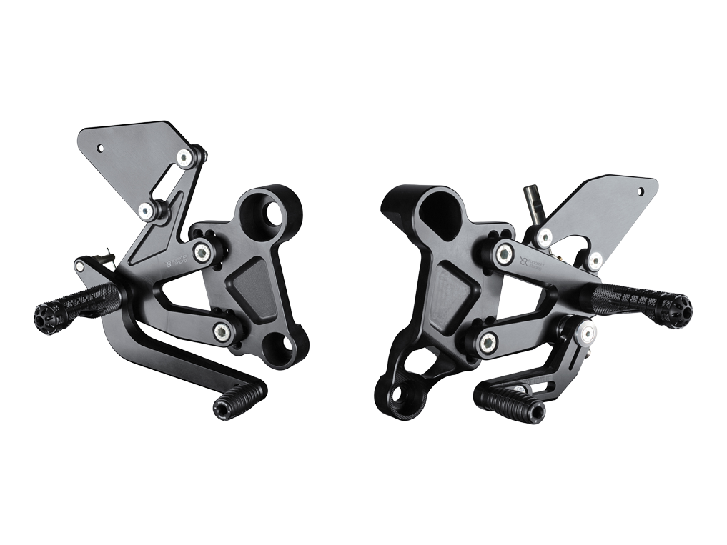 The rearsets use bearings to completely eliminate friction on the foot lever and feature a spring-loaded rear brake lever return. strong, attractive and resistant to mechanical or chemical wear.