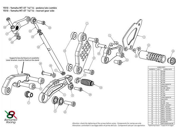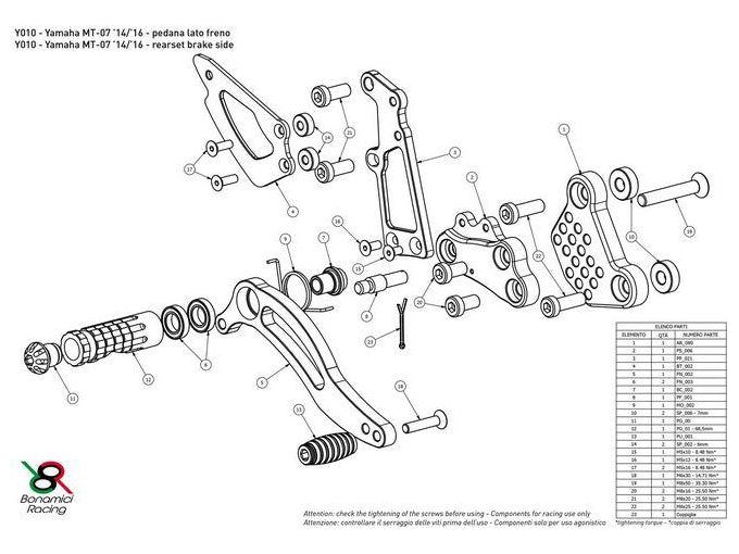 Y010 - BONAMICI RACING Yamaha MT-07 Adjustable Rearset