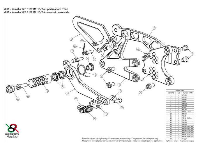 Y011 - BONAMICI RACING Yamaha YZF-R1 (2015) Adjustable Rearset
